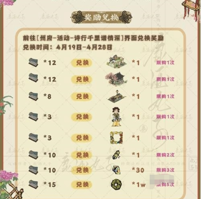 通过州府界面进入活动专区,在诗行千里谱情深兑换页面可查看完整奖励列表。建议每日登录时检查任务进度,利用碎片化时间完成材料收集。注意及时清理背包空间避免道具收取失败。