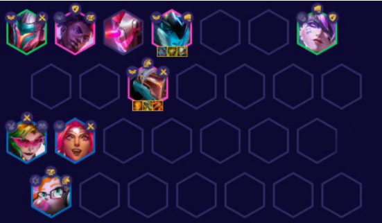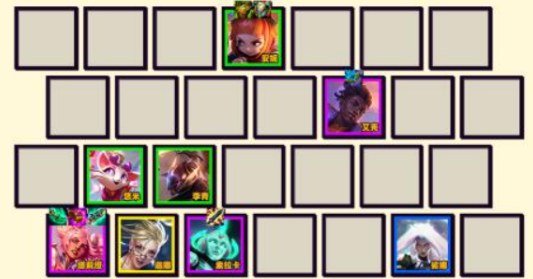 利用3小天才加速装备获取,佐伊与乐芙兰形成双法核。爱心使者羁绊提升团队续航,努努作为副坦携带离子火花削弱敌方魔抗。该阵容灵活多变适合应对不同对手配置。