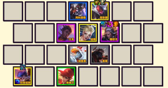 佛耶戈携带科技枪与珠光护手担任主C,4福牛羁绊提供残局反打能力。厄斐琉斯作为物理副C补充输出,3混沌战士增强爆发伤害。需注意保持希维尔存活以维持攻速加成。