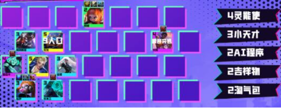以4情报特工为核心构建的速攻体系,艾希携带电刀与飓风可快速清场。搭配3源计划激光特工提升前排坦度,AI程序选择增加攻击速度可显著提升输出效率。该阵容适合前期天胡开局快速滚雪球。