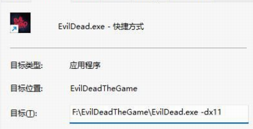 2. 在快捷方式属性面板的「目标」栏末端追加「 -dx11」参数(注意保留空格)。