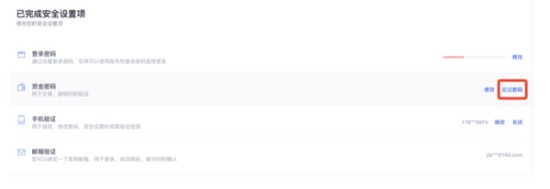 2、在账户安全中心界面,定位资金密码管理区域并选择密码重置选项